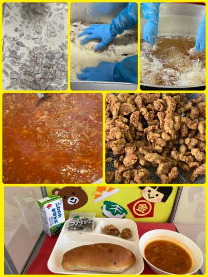 今日の写真は、手作りの一口トンカツが出来上がっていく様子です。一つ一つ衣をつけて、揚げています。カラッと揚がっていてとてもおいしかったです。