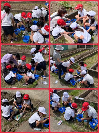 今日は1年生が植木鉢に土を入れ、アサガオの種を蒔きました。何色のアサガオが咲くのかなぁ。楽しみですね。