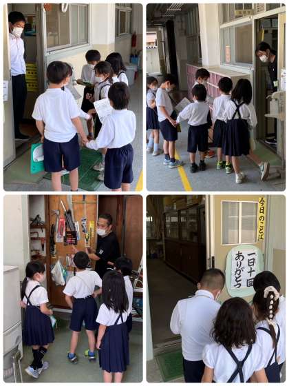 2年生が1年生を学校のさまざまな場所に案内してくれました。先日、「校長室はなにをするところですか?」と聞きに来ていたのは、この日のためだったのね!