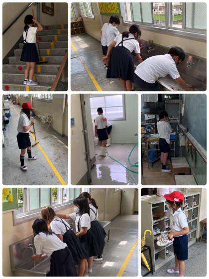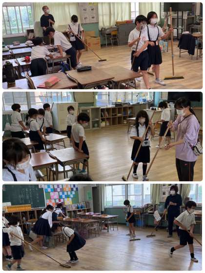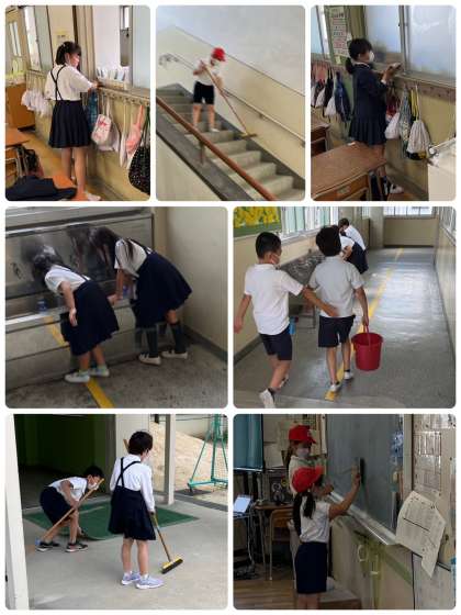 今日は月に一度のクリーンデー。ロッキーのテーマ曲が流れる中、そうじタイムが始まりました。