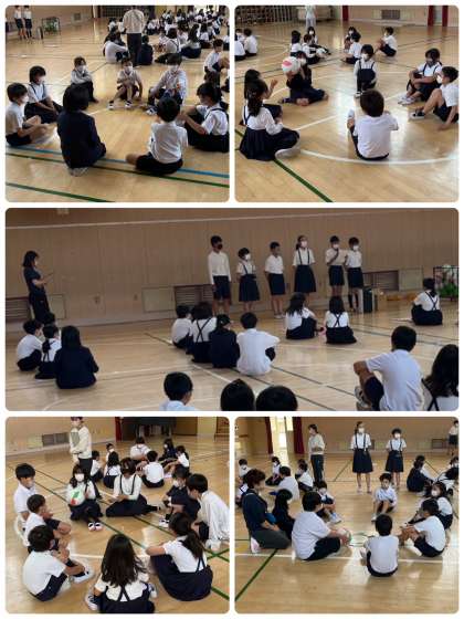 ペア集会、第二弾。今日は5年生と3年生のペアでした。