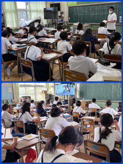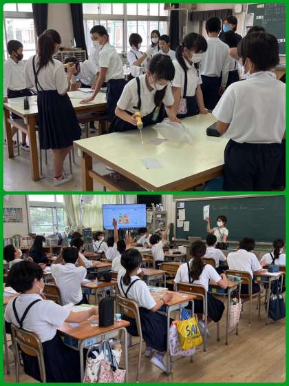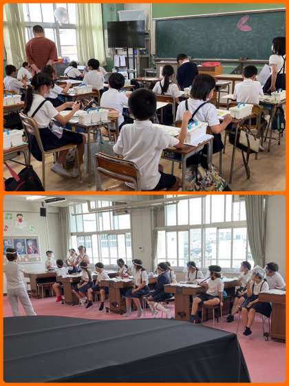 6年1組理科「ヒトや動物の体」の学習。「吸う空気とはき出した息のちがい」の実験に取り組んでいました。ちがいはわかりましたか?