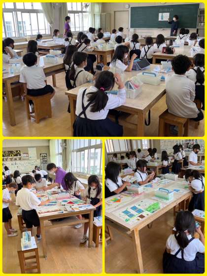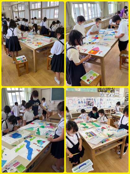 たくさんの色を使って、鮮やかな作品が出来上がってきています。教室に掲示される日を楽しみにしておきますね。
