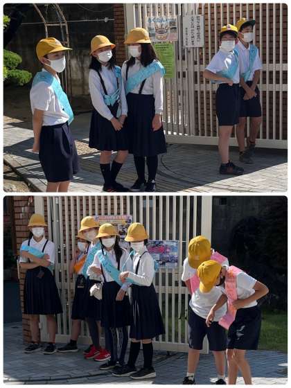 今日から5年2組があいさつ隊に。木曜日担当の6年生と一緒に取り組みました。今日もさわやかな朝になりました。ありがとう!