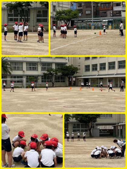 3年生体育「ベースボール型ゲーム」に取り組んでいます。チームワークがとても重要です。作戦会議もしながら今日も楽しく取り組んでいました。