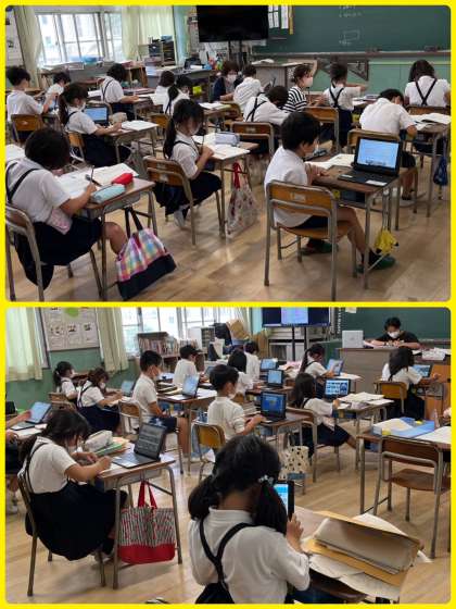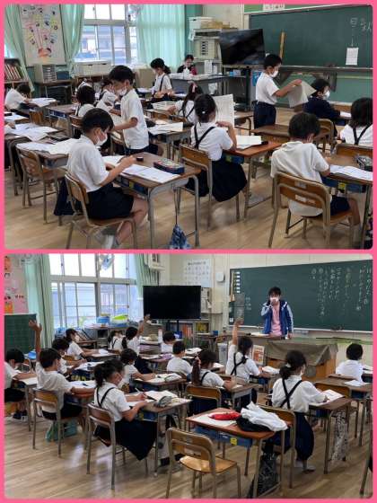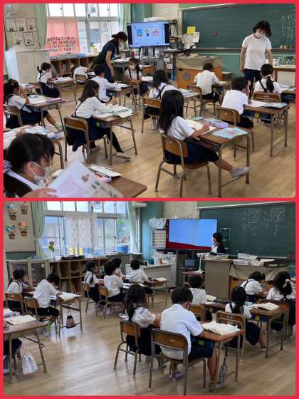 3年生国語の学習は「調べて書こう、わたしのレポート」に取り組んでいました。「タイトル」「調べた理由」「調べ方」「わかったこと」。タブレットを使いながら、熱心にワークシートにまとめていました。「なにを調べたのかなぁ」とのぞいてみると、一人一人の個性があふれていました!ぜひ、クラスのみんなに発表して教えてあげてね。