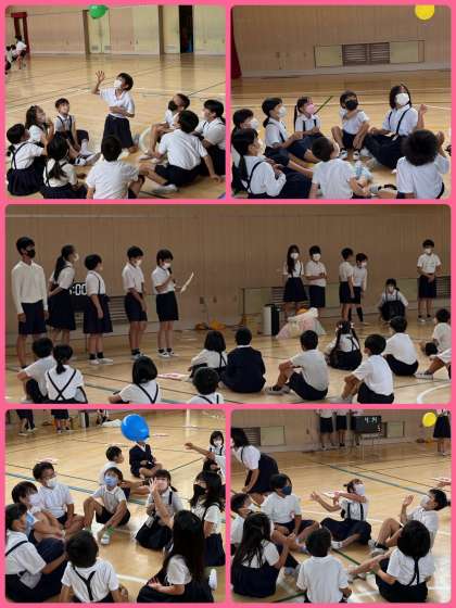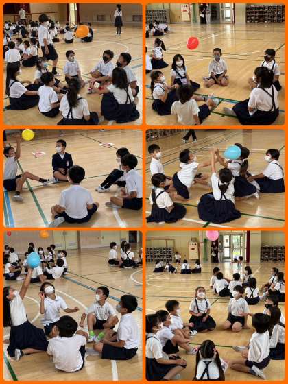 今日は「風船バレー」。何回続けることができるかにチャレンジしました。練習も本番も本当に楽しそうな子どもたち。ルールを守って、どんどん記録を伸ばしていました。楽しかったねぇ〜。