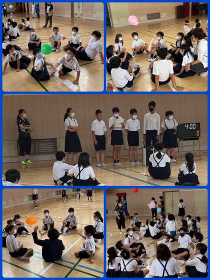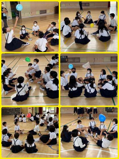 今日も風船を使って何回続けられるかゲームをしました。チームワークがポイントです。練習も本番も楽しく活動していました。ルールを守って、どんどん記録を伸ばしていました。