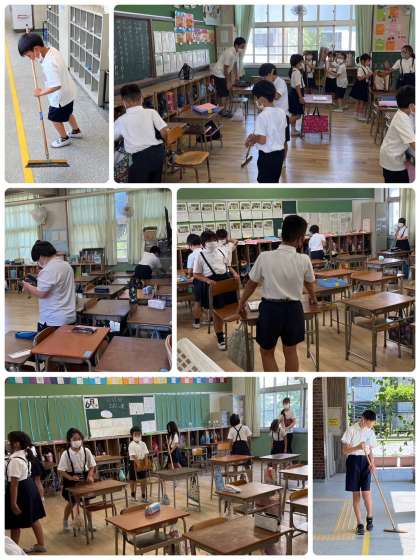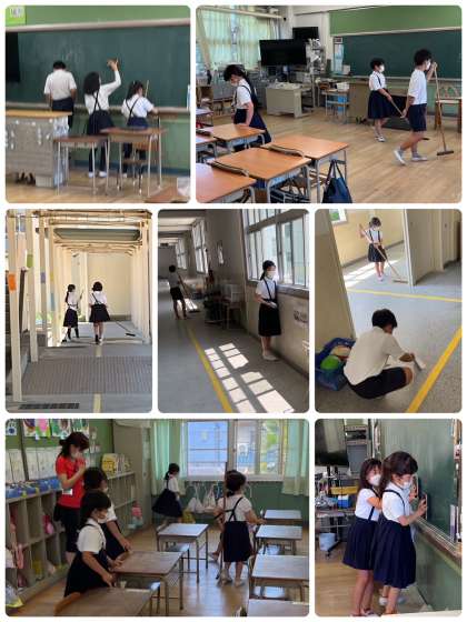 今日もどの場所も、汗をかきながら子どもたちと先生で一生けんめいにそうじをしていました。すばらしい子どもたちです。