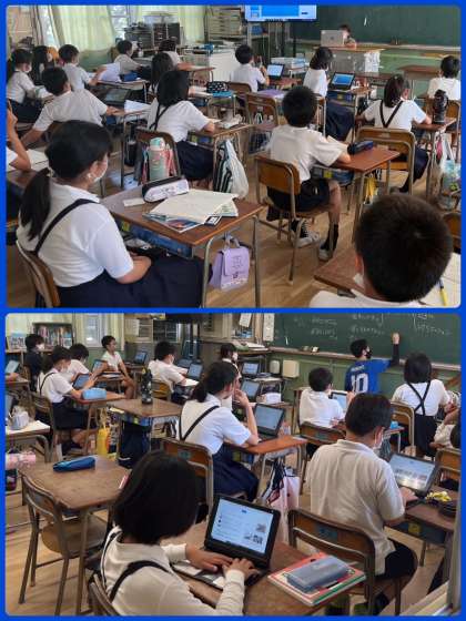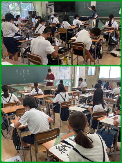 6年生が書道に取り組んでいました。自分で選んだテーマに沿って書いていました。納得いく字が書けたかな?