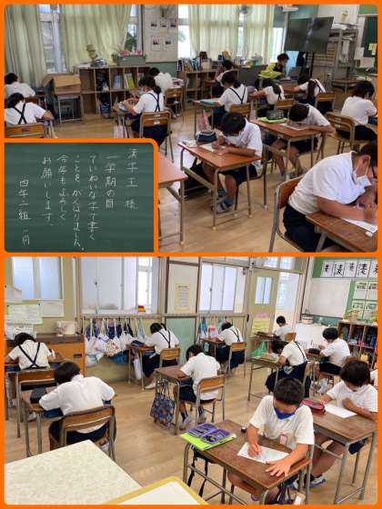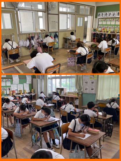 4年生にもなると、漢字もむずかしく、ややこしいものもチラホラ。それでも、今回のテストに向けて繰り返し練習してきたようで、一人一人がその成果を発揮していました。何より1組も2組も本当に字がていねいでした。よくがんばりました!