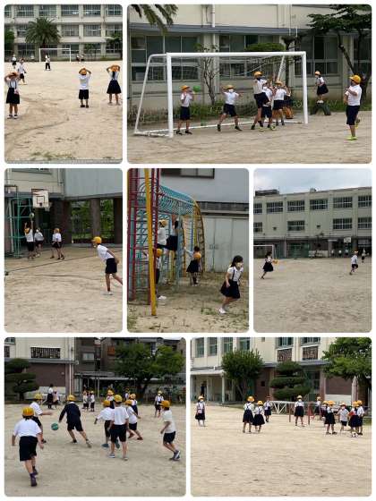 暑さ指数が「厳重警戒」のときは、鬼ごっこやケイドロよりも、ドッジボールやだるまさんがころんだを。と放送で伝えました。