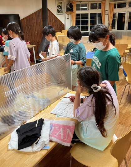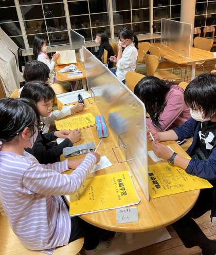 一生懸命に内容を考えてはがきを書いていました。子どもたちの思いが家族のみなさんに届きますように…。