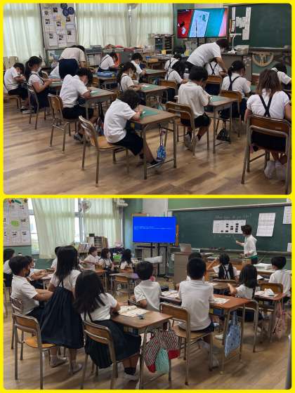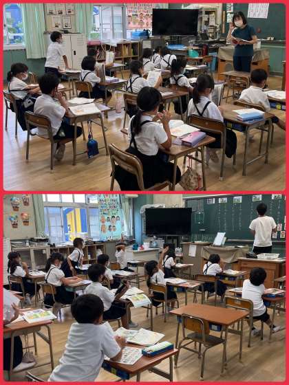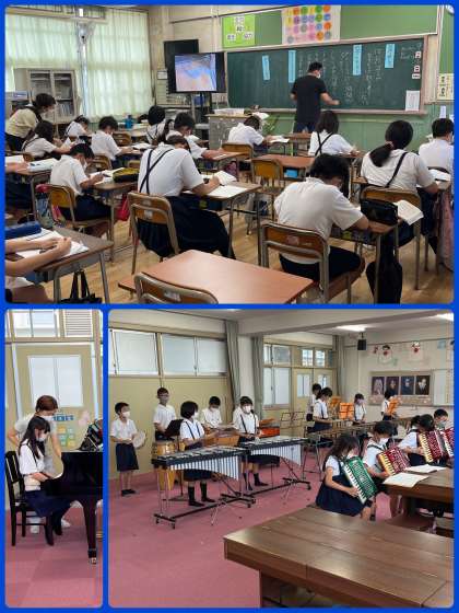 5年2組音楽の学習。合奏「アフリカンシンフォニー」の練習が始まりました。リズムが難しい曲ですが、コツコツと練習していきましょう。楽しみにしていますよ。