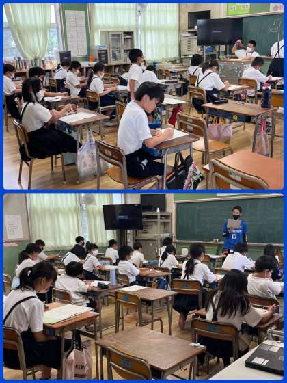 4年2組理科「とじこめた空気のせいしつ」の学習。「空気てっぽうで玉を飛ばしてみよう」の実験をしていました。結果から気づいたこと、わかったことをしっかりまとめてくださいね。