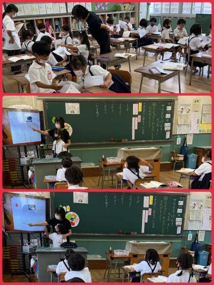 国語「サラダでげんき」の学習。たくさんの動物たちがサラダに入れるものを教えてあげる物語。今日は自分ならりっちゃんに何をオススメするか、考えました。