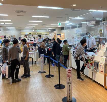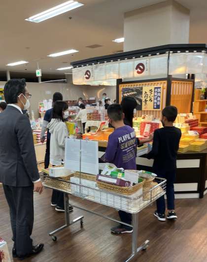 おみやげ選びに悩む子どもたち。家族のこと、おじいちゃんおばあちゃんのこと、習い事の先生のこと…いろいろな人の顔を思い浮かべながら、一生懸命考えて選んでいます。