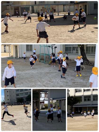 汗ばむくらいの陽気の中、今日も元気な子どもたちです。右下は昼休みが終わって急いでそうじ場所に行く2年生。すばらしい!