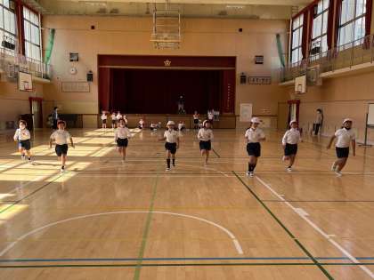 今日は3年生がシャトルランにチャレンジ。春の記録より伸びていたらいいね。