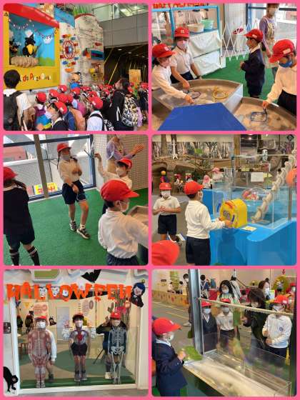 各グループにひとつ腕時計を持って、グループ活動スタート。「はぐれる人はいないかな?」「集合時間に集まれるかな?」と心配していましたが、相談しながら、協力しながら、グループ活動できていました。すばらしい!どんなコーナーに行って何をしたのか、おうちで聞いてあげてください。