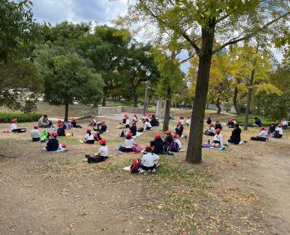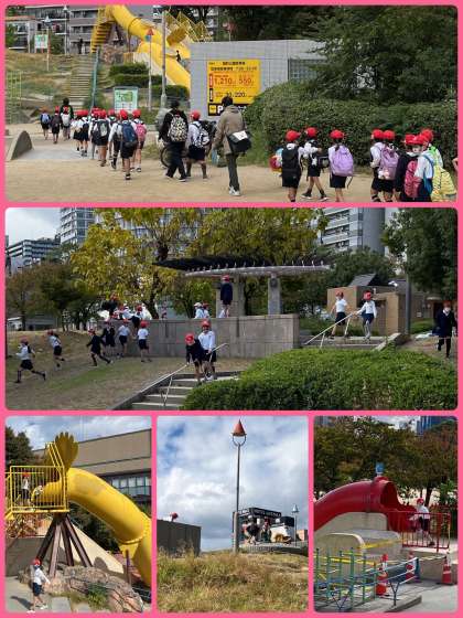 念のため、子どもたちの間隔を空けてのお弁当タイム。「見てー」「この卵焼き、めっちゃおいしいねん」とたくさんの子どもたちが自慢のお弁当を見せてくれました。食べるのがもったいなくなるようなかわいいお弁当や、おいしそうなおかずやおにぎり。子どもたち、食べる前も食べた後も大満足でした。早朝からありがとうございました!