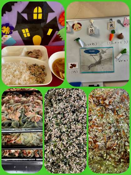 今日の給食献立は、『鶏肉のゆず塩焼き、ソーキ汁、ツナ大豆そぼろ、ごはん、牛乳』でした。
