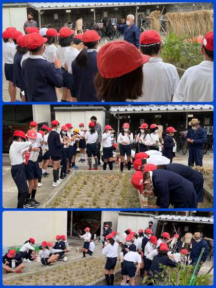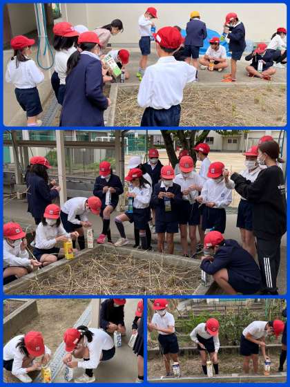 はじめはぎこちなかった子どもたちもコツをつかみ、脱穀作業が進んでいきました。中には、手で一つ一つ取っていく子も。脱穀する稲はまだまだ残っています。これから休み時間に協力してがんばりましょうね。