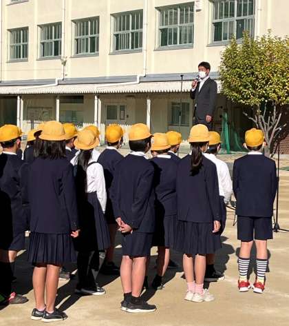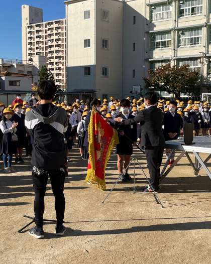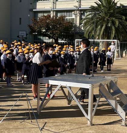 優勝は白組!!白組代表に優勝旗が、惜しくも準優勝だった赤組代表に準優勝盾が教頭先生から渡されました。