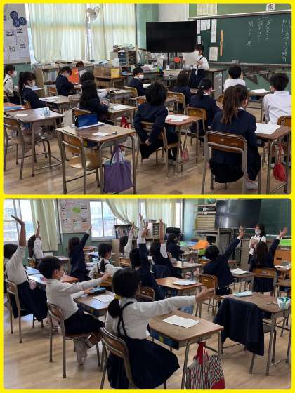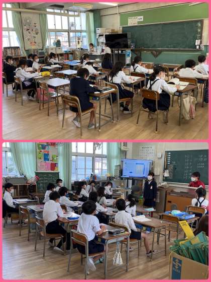 3年生国語は「話したいな、わたしのすきな時間」の学習。これまで話す材料を集め、文章を組み立ててきました。今日はその発表!はきはきと聞いている人に伝わるように話せていました。すばらしい!