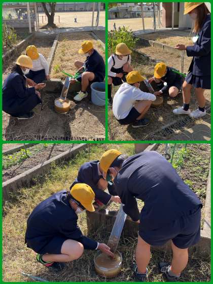 6年2組理科の学習。今日は「水のはたらきによる地層のでき方」を実験を通して学んでいました。どのようにして地層ができたか、結果からまとめておいてね。
