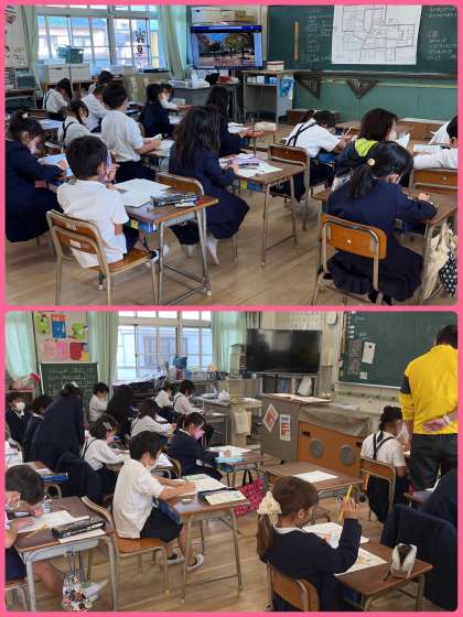 校区たんけんに行ってきた2年生。帰ってきて早速見てきたもの、あった建物などをまとめていました。いつもの見慣れた街にも知らなかったものがあったかな?