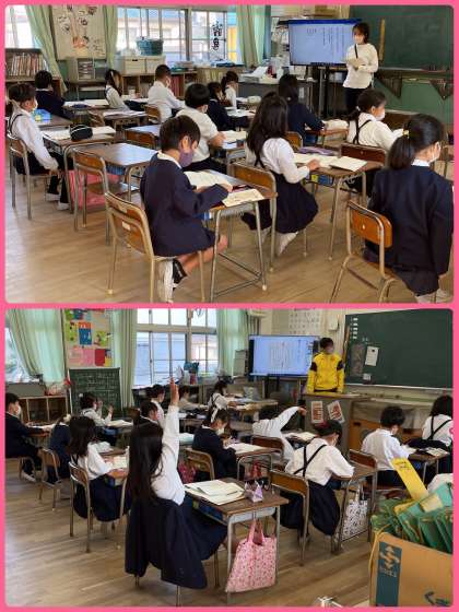 3年1組音楽の学習。「山のポルカ」をリコーダーで演奏していました。この曲には「ファ」「ミ」の音が出てきます。だんだん指遣いが難しくなるリコーダーですが、吹き方も大事。「toー」と言うときのように吹くのがコツです。がんばろうね。