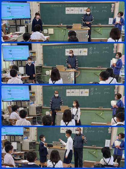 「行きたい国とその理由をたずね合おう」をめあてに学習に取り組んでいました。自分の行きたい国はどこで、それはどうしてか。担当の先生やC-NETに確認しながら「サッカーの試合が観たい」「ピザが食べたい」「オーロラが見たい」、自分の思いを英語で伝えることができていました。