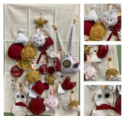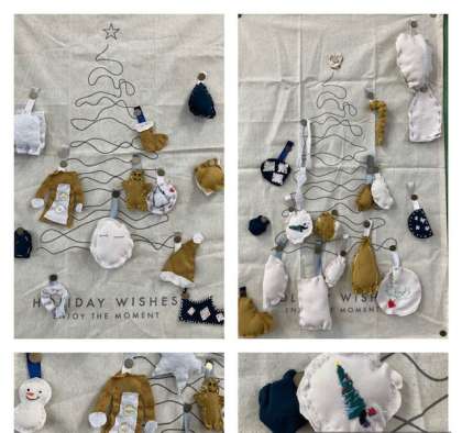 家庭科の学習で手縫いのクリスマス飾りを作っていました。