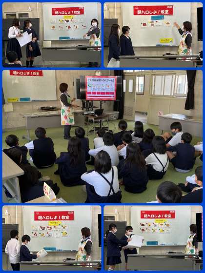 5年生も出前授業を行いました。カルビーさんにお越しいただき、「朝ハロしよ!教室」の学習に取り組みました。