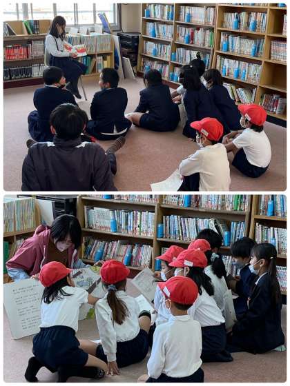 図書委員のみなさんが、読み聞かせも頑張っています。みなさん、お昼休みに来てくださいね!