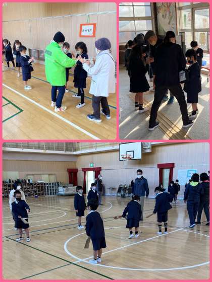 1年生2年生が生活科の授業で昔遊びを行いました。3年ぶりに地域の皆様をゲストティーチャーとしてお招きし,かるた・お手玉・けん玉・おりがみ・あやとり・羽根つき・こままわしのブースに分かれて昔遊びを楽しみました。子どもたちは,様々な遊び方を学び,いきいきと楽しく活動していました。