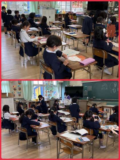 学校だよりでお伝えしましたように、来月には作品展を予定しています。今日は1年生が図工の学習に取り組んでいました。各学年どんな作品を出してくれるのか、楽しみです。