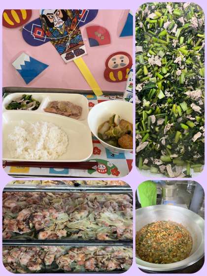 今日の給食献立は、『鶏肉のゆず塩焼き、あつあげと野菜の煮もの、こまつなの煮びたし、ごはん、牛乳』でした。