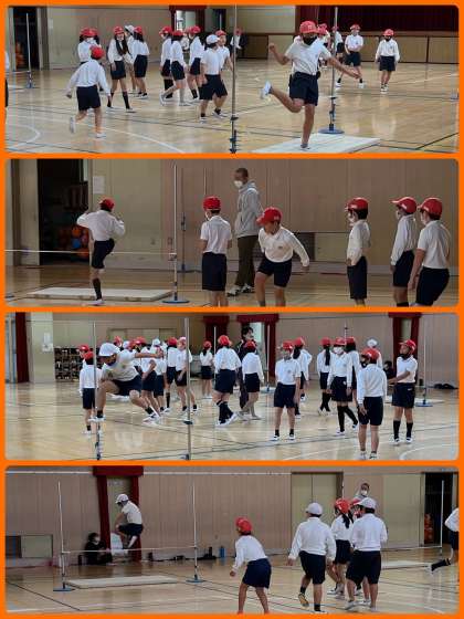 4年生体育の学習は「走り高跳び」。リズミカルな助走から力強く踏み切るのがポイントです。今日は助走の最後の3歩を意識して跳んでいました。どんどん記録を伸ばしましょうね。
