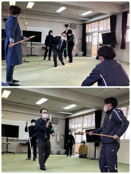 ないことが一番ですが、いざという時に備えて、平野警察署の方にお越しいただき、放課後に『教職員防犯訓練』を行いました。不審者が侵入した時にどのような行動をとるか、教職員で確認しました。来週は、子どもたちとも訓練をします。