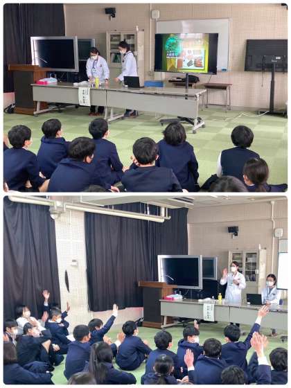 正しいお薬の服用方法、そして薬物乱用防止について、子どもたちにもわかりやすいように実験も交えて教えていただきました。薬物の怖さが十分にわかったと思います。6年生のみなさん、薬物乱用は「ダメ。ゼッタイ。」ですよ。