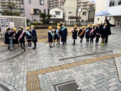 今日もあいさつ隊は2年1組のみなさん。雨がパラパラと降ったり止んだりのお天気の中、時間いっぱいまでがんばってくれました!