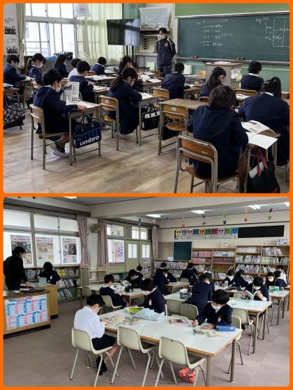 4年2組図書の時間。私が入っても気づかないほど、本の世界に入る子どもたちでした。すばらしい!