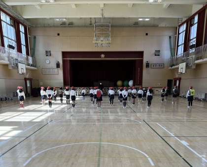 お世話になった6年生にありがとうの思いを伝えようと各学年が7日の「6年生を送る会」に向けて練習を重ねています。【写真は2年生】