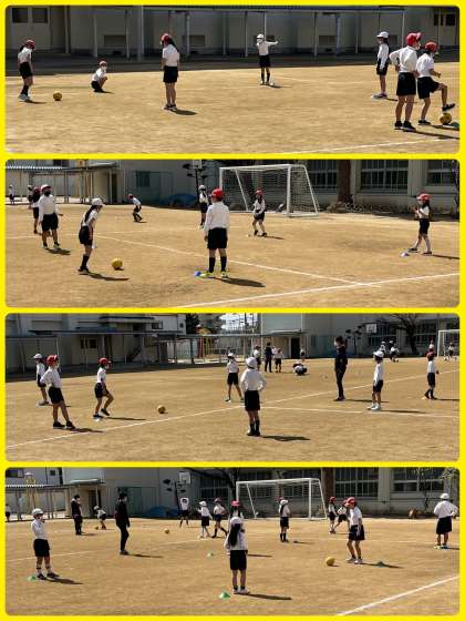 あたたかい日差しの中、3年生が体育の学習がんばっていました。