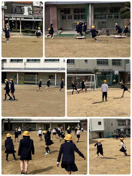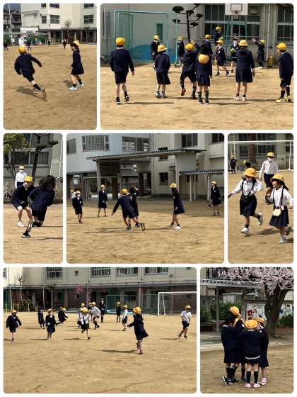 今朝までの雨で、最初は使えなかった運動場も2時間目後からは使えるように。さぁ、遊べーー!