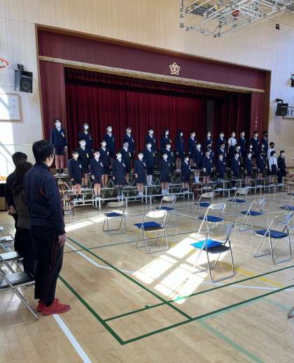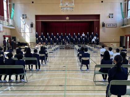 今日は5年生も参加し、卒業式予行を行いました。子どもたちの顔も引き締まってきました。