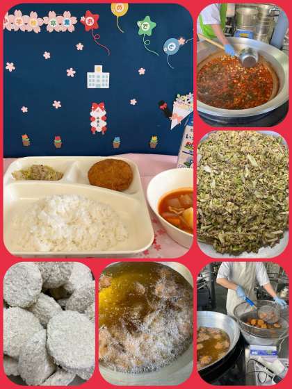 6年生は小学校生活最後の給食でした。朝昼晩の三食のうち、毎日お昼は給食を食べてきました。ということは、みなさんの体の3分の1は給食で大きくなったのですね。本当に毎日おいしかった給食。給食調理員のみなさん、ありがとうございました!