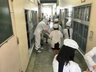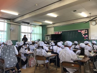 本日より給食が始まりました。久しぶりの給食に子ども達は大喜びでした。じゃがいもミートグラタンは大の人気メニューです。当番も上手にできました。